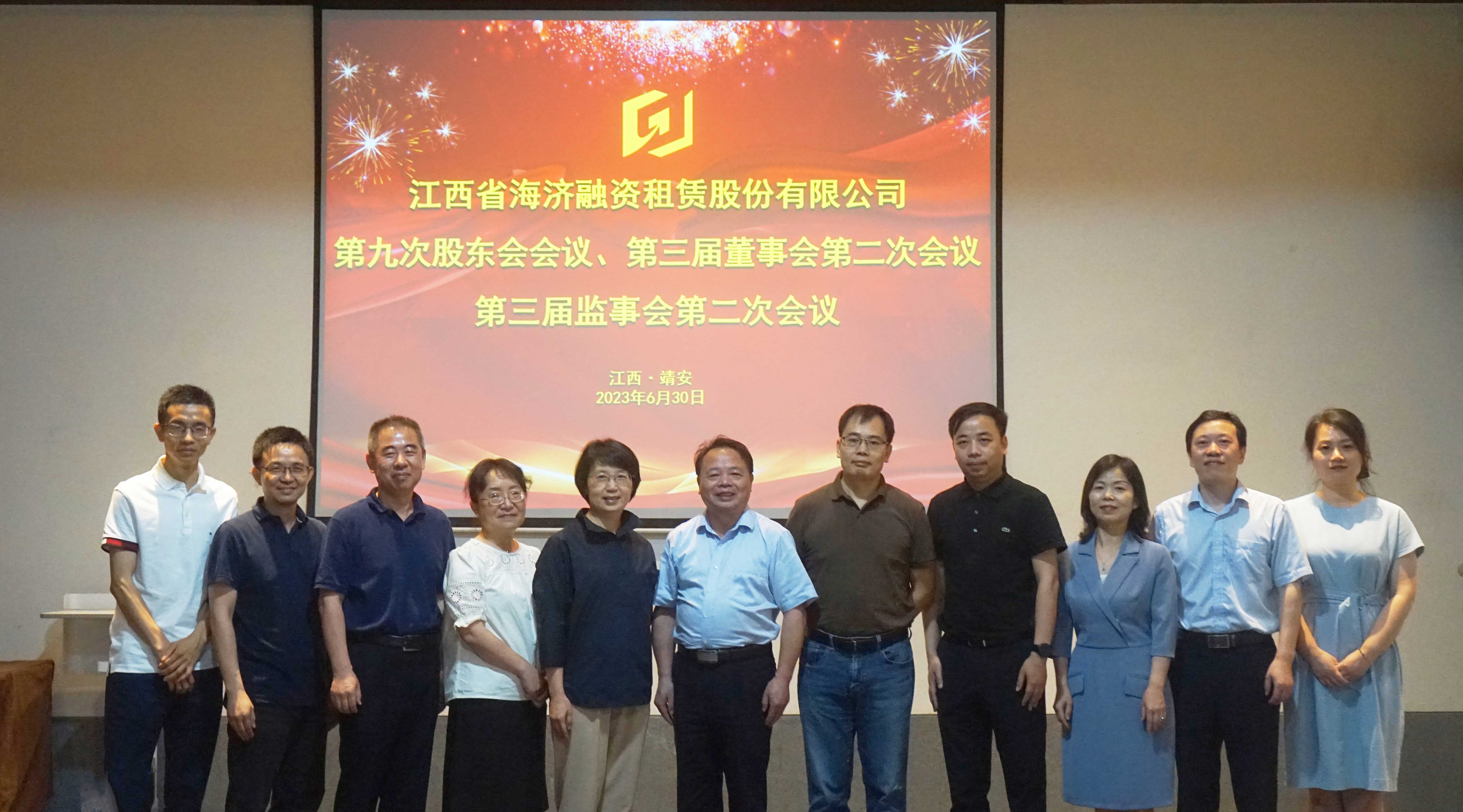 6月30日,江西省海濟(jì)融資租賃股份有限公司召開(kāi)第九次股東會(huì)會(huì)議、第三屆董事會(huì)第二次會(huì)議暨第三屆監(jiān)事會(huì)第二次會(huì)議。江咨集團(tuán)黨委書(shū)記、董事長(zhǎng)柳習(xí)聰蒞臨會(huì)議并講話。會(huì)議由公司董事長(zhǎng)黃偉主持,并代表董事會(huì)作年度工作報(bào)告。江西省咨詢投資集團(tuán)有限公司、江西省國(guó)有資本運(yùn)營(yíng)控股集團(tuán)有限公司、安徽鑫科銅業(yè)有限公司、飛尚實(shí)業(yè)集團(tuán)有限公司股東單位的股東代表、董事和監(jiān)事在現(xiàn)場(chǎng)參加會(huì)議。股東單位相關(guān)人員,公司全體高管列席會(huì)議。
