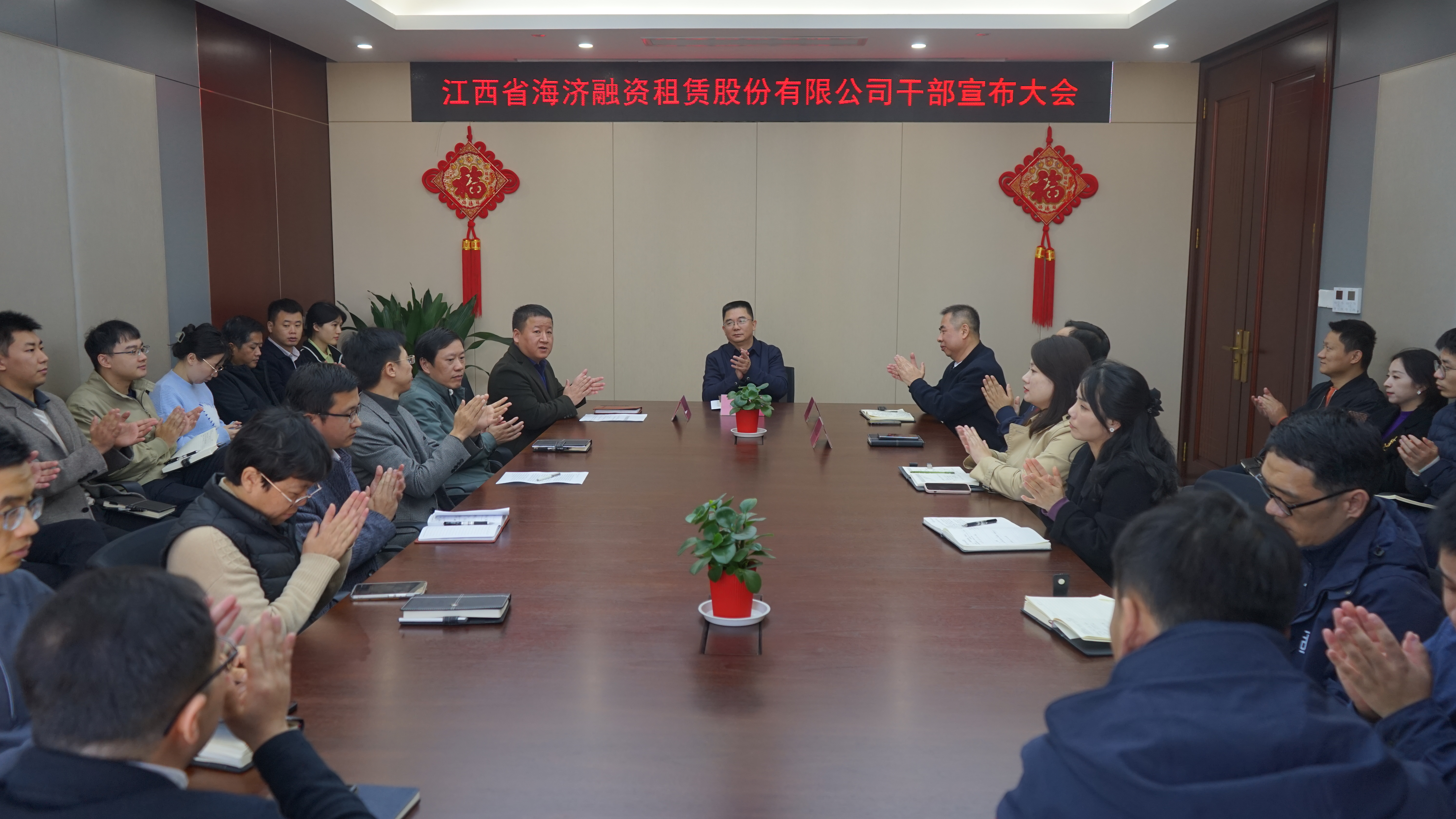 ? ? ? 2023年11月20日,江西省海濟(jì)融資租賃股份有限公司召開干部宣布大會(huì)。江咨集團(tuán)公司黨委委員、副總經(jīng)理段虛谷出席會(huì)議,集團(tuán)黨委組織部有關(guān)同志宣讀集團(tuán)黨委干部任免職的決定:提名詹志勇同志為海濟(jì)公司副總經(jīng)理;提名江斐同志為海濟(jì)公司副總經(jīng)理,提名鄒琦同志為海濟(jì)公司董事、財(cái)務(wù)總監(jiān),免去其集團(tuán)公司合規(guī)審計(jì)部副部長職務(wù);提名楊榮同志為公司總經(jīng)理助理。海濟(jì)公司全體干部職工參加會(huì)議。