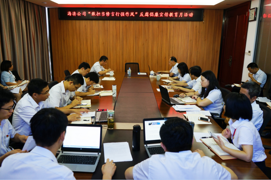 ????? 二是觀“廉”片為戒。警示教育是反腐倡廉宣傳教育的重要手段和方法,能夠給大家?guī)磔^為直觀的體會(huì)和感受。公司組織全體員工集中觀看了反腐倡廉警示教育片《永遠(yuǎn)在路上之利劍出鞘》和《代價(jià)》,通過對(duì)副國(guó)級(jí)“大老虎”以及“小官巨貪”觸目驚心犯罪事實(shí)的揭露,生動(dòng)還原了犯罪官員的心路歷程,深層剖析腐化墮落的源頭根本,切身體會(huì)貪官們追悔莫及的懺悔心理,讓大家從人性和社會(huì)的角度認(rèn)識(shí)到只有潔身自好、抵制誘惑、筑牢防線、規(guī)矩做事,才能真正做到引以為戒。